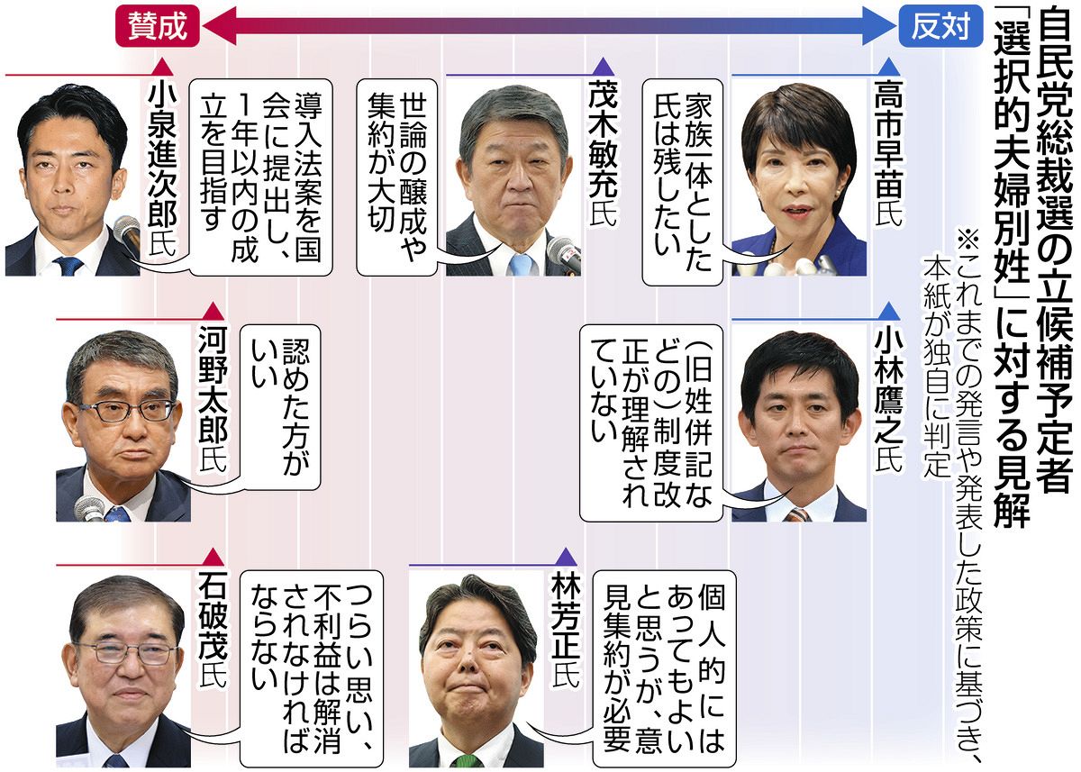 立民案と国民案は子どもの姓の決め方が異なるものの、いずれも別姓を導入。一方、維新案は夫婦の同姓を維持した上で、旧姓を通称として使用できるようにする。結果として野党間の足並みは乱れ、自民内も意見集約に難航し、採決に至らず継続審議となった。