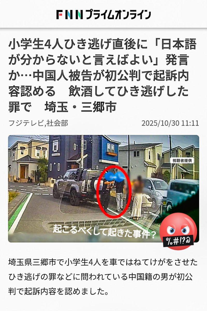 小学生4人ひき逃げ直後に「日本語が分からないと言えばよい」発言か…中国人被告が初公判で起訴内容認める 飲酒してひき逃げした罪で 埼玉・三郷市
