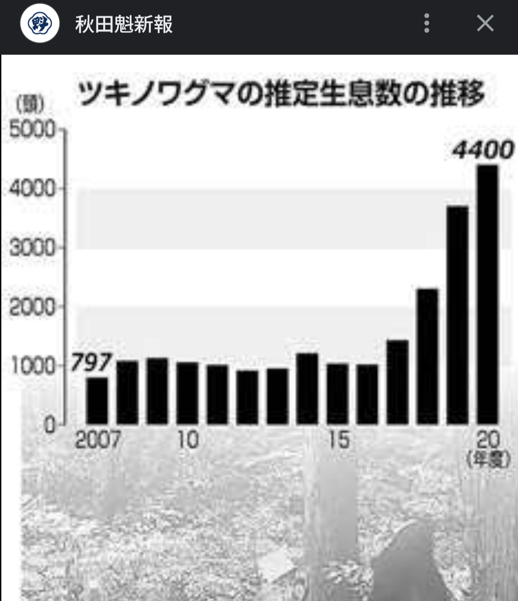 この30年間で熊の生息数は数倍に増えてる