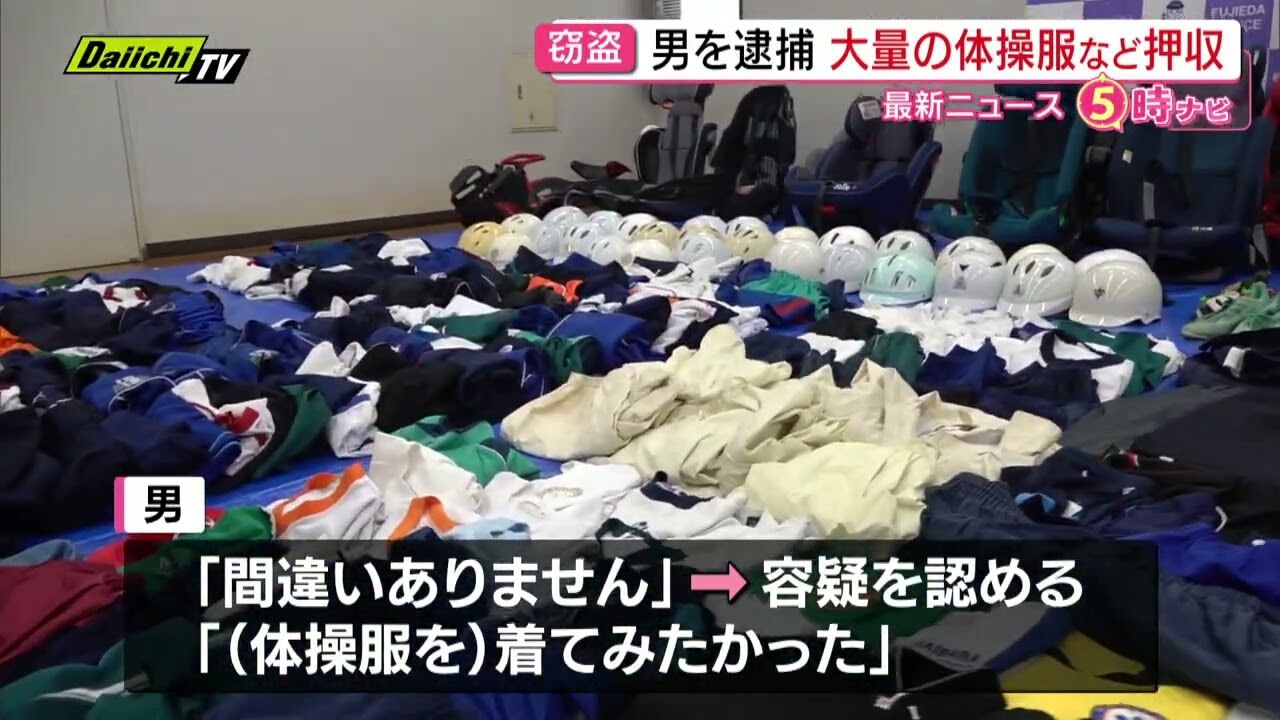 | 盗んだ体操服を着て自慰行為…普段着として着用も 自宅からは盗品540点を押収 27歳男「間違いありません」 初公判で起訴内容認める スリルや達成感を味わうため約10年前から窃盗繰り返す …感を味わうために10年ほど前から窃盗を繰り返していたと指摘した上で、盗んだ体操服を着用して自慰行為に及んでいたことや普段着として着用していたことを明らかにしています。 (出典:テレビ静岡NEWS) |