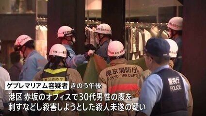 無職のゲブレマリアム・メスフィン・ムラレット容疑者(61)は12日、港区赤坂の会社事務所で、元上司で30代の男性の腹を刃物で刺すなどして殺害しようとした疑いで現行犯逮捕されました。